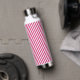 Diagonal pink and white stripes pattern water bottle