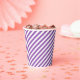 Diagonal purple and white stripes pattern paper cups