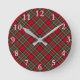 Diagonal Red Plaid Design Wall Clock