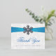 Diamante Snowflake & Blue Ribbon Winter Wedding Foil Invitation Postcard