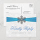 Diamante Snowflake & Blue Ribbon Winter Wedding Invitation Postcard