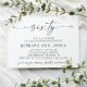 Celebrate 60 years of marriage with this diamond wedding anniversary invitation. Designed in a modern minimalist style with elegant calligraphy, this customisable card beautifully honours a lifetime together. The reverse side features space for a treasured photo of the couple, making it heartfelt and personal. Perfect for inviting family and friends to celebrate a 60th anniversary dinner, party, or gathering. Available in print or as a digital download.