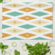 This fabulous mid century modern inspired kitchen features a turquoise blue, orange, and cream diamonds and stars pattern which would add a bit of funky to your kitchen decor!