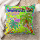 The picture doesn’t show the design but this pillow is adorable. The colors are bright and fresh, the fabric is great for indoor/outdoor use. Beautiful colors and picture of flip flops. Font is great.