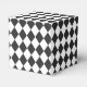 Crisp, minimalistic black and white pattern on a birthday favour box is touched with peach florals and a golden birthday crown. Crown is faux gold with a ruby coloured heart.