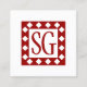 A square business card template with initials placed inside a square box with a decorative frame. In this version the initials are in the Integrity bold font. Name and profession/job title along with telephone, email and website address in black on the reverse side on a white background, using variations of the Matt Antique font.