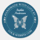 Diamond Butterfly, Handmade With Love Ocean Blue Classic Round Sticker