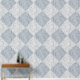 A traditional crackled paint texture in a diamond chequerboard pattern evokes an aesthetic vibe for traditional, cottagecore, and farmhouse to bohemian and gothic styles. Diamond Check Crackle Texture White and Blue Wallpaper