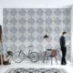 Diamond Check Crackle Texture White and Blue Wallpaper