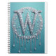 Elegant diamond-encrusted W monogram emblem on a teal dripping glitter background, conveying luxury, glamour and premium style. Perfect for jewellery, fashion, logo design, monogram branding and upscale marketing.