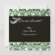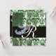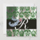 DIAMOND FEATHERS GREEN WHITE SILK DAMASK MONOGRAM INVITATION