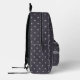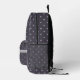 This backpack features a dusty plum purple scripted name on a pale pink grey Deco style band over a diamond pattern on dusty plum purple with diamond florets at the intersections.