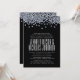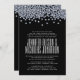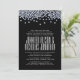 A simple yet beautiful modern wedding invitation in black and white with blue accents. To the top of the invitation are faux diamond effect glitter sparkles. Below the image is a simple typography wedding invitation wording template. This invitation is also ideally suited to Diamond Wedding Anniversary Parties.