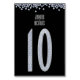 A stylish and elegant wedding reception table number ten card in black and white with subtle blue accents. To the top of the card are pretty diamond effect glitter sprinkles. The numerals themselves also feature a faux diamond effect. This table number card is also perfectly suited for Diamond Wedding Anniversary Celebrations.