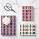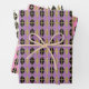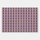 Wrapping paper that can be used for the holidays and throughout the year. Patter features black and gold diamonds with a gold grid on white, purple and pink backgrounds.