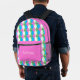 Introducing our stunning Golf Diamond Pattern backpack in vibrant blues, greens, and pinks! With alternating pink golf carts and golf balls on tees, surrounded by delightful flowers, it adds a touch of elegance to your school or daily life.