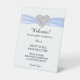 Diamond Heart Blue Ribbon Wedding Safety Pedestal Sign