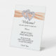 Diamond Hearts Orange Ribbon Wedding Safety Pedestal Sign