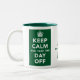 A mug with a parody of the 1939 government public information poster bearing the words 'Keep Calm And Take The Day Off' in white text.