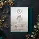 This mocha brown coloured wedding invitation features a modern diamond-shaped monogram at its centre, with the bride and groom's initials prominently displayed. The monogram is surrounded by classic typography in white, adding a trendy touch of elegance to the design. Delicate floral details further embellish the invitation, giving it a romantic and timeless feel. The overall design is sophisticated and unique, making it a perfect choice for a stylish and sophisticated wedding.