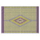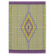 This 60x84" tablecloth has a mosaic tiles / beads pattern with a diamond motif centred, in cool colours of purple, violet, sage green, chartreuse, and soft muted periwinkle blue, with creamy tan "grout", side borders in purple and violet. Can be visualised as mosaic tiles, or beading. Art by Kristie Hubler. For Spring Season 2015 fashion trend colours.