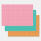 Wrapping paper in a mediaeval inspired diamond pattern - coral pink and white, turquoise and aqua, and deep mandarin and pastel orange
