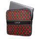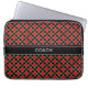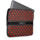 Modern belt on diamond pattern in black and red Laptop Sleeve. Text can be personalised.