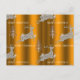 A gorgeous golden Christmas postcard featuring a glittering pattern of reindeer made of tiny diamonds (printed only) and sparkles. Scattered around them are modern, silver Christmas trees and Merry Christmas greetings, all on a luxurious gold background.