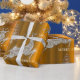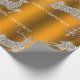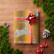 A very festive, luxe golden Christmas wrapping paper featuring a sparkling pattern of reindeer made of tiny diamonds and sparkles (printed only). There are also modern, silver Christmas trees and Merry Christmas greetings all on a gold metallic background.