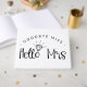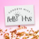 Bridal shower guest book in white with a charming typography design saying "goodbye miss hello mrs" with a diamond over the o to create an engagement ring. Add the bride's name on the spine.