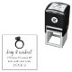 Embellish your save the dates, engagement party invitations or announcements with our diamond engagement ring return address stamp, featuring your name and return address details in a modern mix of handwritten calligraphy script and block lettering, topped by a diamond ring illustration.