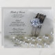 Customise the pretty Diamond Rings and Pearls Wedding Menu with the details of the meal that you will serve at your wedding dinner or luncheon by adding the salad or first course, entree or second course and dessert or third course. Personalise it with the names of the bride and groom, reception location and marriage ceremony date. This elegant custom wedding menu features a close up photograph of a diamond engagement ring and wedding band set with a white pearl necklace.