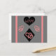 Black and pink heart shapes pattern, along with a diamond (harlequin) shape, decorate this cool, grey postcard! The word "love" shows in the black hearts, written in pink, and there are pink stripes on the sides of the postcard! This would be perfect for Valentine's Day, anniversaries, weddings, or birthdays! Diamond Shapes and Hearts "Love" Pattern © 2019 Regina Blankenship.