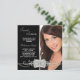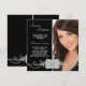Elegant black diamond photo birthday party invitation. This pretty silver and black diamond birthday party invitation works well for a sweet sixteen birthday party invitation, Quinceanera invitation, womans elegant photo birthday party invitation, girls black photo graduation announcement, black photo Bat Mitzvah invitation, or any other black diamond theme party or event and is easily customised by simply choosing the "Customise it!" button to begin adding your photo, event details, font style, font size & colour, and wording. Please note - all of the card and invitation designs you will find on Zazzle are printed graphics with no actual jewels, bows, raised, embossed, or added parts or pieces.