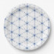 Blue snowflakes in a diamond pattern on a white background. The snowflakes started as a photograph taken in 1909 of individual snowflake crystal. The subtle pattern is great for any winter holiday.