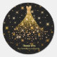 The sticker is made on wonderful paper and had no problem sticking to the bag that I purchased to put it on. I wanted to find a design that would be cute for the bride and groom and this one fit the bill as it has cute "bees" buzzing around and the wedding was taking place in a town called "Bee Cave". The packaging was great and protected the stickers. The website is easy to navigate and there are so many color choices. I had no problem finding a color that the bride was using on everything else selected. The design was adorable and there were many to choose from. You can make the figure as larger or smaller and you can place the photo and writting whereever you want to in the sticker. The printing is fabulous..better than expected.
