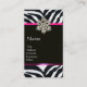 DIAMOND STAR PINK BLACK WHITE ZEBRA FUR MONOGRAM BUSINESS CARD