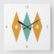 Diamond Starburst Argyle Mid Century Retro Square Wall Clock