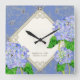Diamond Swirl Blue Hydrangea Wedding Anniversary Square Wall Clock