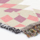 A quality printed throw has its advantages. This is a much finer weave throw than its loopier cousins, and though lighter, it is worth the investment for custom room accessorizing. The back is much prettier than the typical brown, and the fringe on the long sides very vivid, the selvage nicely done. Before photographing, I washed the throw in cold water, delicate, with a thicker woven throw the same size. On tumble dry low, this throw was dry in half the time as the other. This is a very practical quality if you use throws for furniture covers or to wrap up in frequently. The sleekness of the fabric makes it a great layer for accenting or protecting without the feeling of sitting on too much stuff. Perfect for napping or when you feel a light chill coming on. The color printing is beautiful and on this fabric, matched the design and color of my Photoshop image. This is an advantage for blending room fabrics and colors. The fringe on the short sides prints the colors from the design image and therefore varies from the side fringe. I streaked a white fractal line through the plaid pattern to give the illusion of weaving. This printed as crisp as an illusory thread, and put some white in the short side fringe, showing another advantage of print vs loomed- for artistic purposes, line lines, detail, and color integrity can be planned and preserved. My loomed throws have color limitations and more of a needlepoint texture. Print throws reproduce an exact image. The throw felt a little stiff straight out of the package, but this went away in the first delicate wash. Of course I searched the wash water for ink or bleeding and there was none.