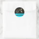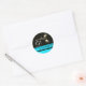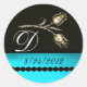 DIAMOND TULIPS BLACK WHITE AQUA BLUE TEAL MONOGRAM CLASSIC ROUND STICKER