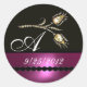 DIAMOND TULIPS BLACK WHITE PINK FUCHSIA MONOGRAM CLASSIC ROUND STICKER