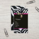 DIAMOND TULIPS PINK BLACK WHITE ZEBRA FUR MONOGRAM BUSINESS CARD