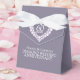 Diamond wedding anniversary party thank you gift box. Personalzzie with your names. Great to add a touch of personalised bling to your sixty years diamond wedding anniversary party, dinner parties and informal gatherings. Ideal gift packaging for favours or to place on reception dinner tables or party tables filled with sweets or gifts. Would also make a nice parting commemorative thank you for coming gift. Grey and white diamond heart effect art and design by Sarah Trett.