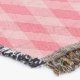 A quality printed throw has its advantages. This is a much finer weave throw than its loopier cousins, and though lighter, it is worth the investment for custom room accessorizing. The back is much prettier than the typical brown, and the fringe on the long sides very vivid, the selvage nicely done. Before photographing, I washed the throw in cold water, delicate, with a thicker woven throw the same size. On tumble dry low, this throw was dry in half the time as the other. This is a very practical quality if you use throws for furniture covers or to wrap up in frequently. The sleekness of the fabric makes it a great layer for accenting or protecting without the feeling of sitting on too much stuff. Perfect for napping or when you feel a light chill coming on. The color printing is beautiful and on this fabric, matched the design and color of my Photoshop image. This is an advantage for blending room fabrics and colors. The fringe on the short sides prints the colors from the design image and therefore varies from the side fringe. I streaked a white fractal line through the plaid pattern to give the illusion of weaving. This printed as crisp as an illusory thread, and put some white in the short side fringe, showing another advantage of print vs loomed- for artistic purposes, line lines, detail, and color integrity can be planned and preserved. My loomed throws have color limitations and more of a needlepoint texture. Print throws reproduce an exact image. The throw felt a little stiff straight out of the package, but this went away in the first delicate wash. Of course I searched the wash water for ink or bleeding and there was none.