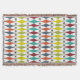 This throw blanket has a mid-century modern design of stretched diamonds and starbursts on a field of white.