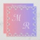 A decorative pink and blue wedding invitation which can be customised with your own monograms and initials. Featuring an ornate, white border with diamond decorations, this truly elegant wedding stationery will impress all who are lucky enough to receive it.