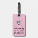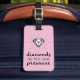 A luggage tag that will appeal to the ladies especially with its words of encouragement and inner strength. It is a typography lettering design with words that read "diamonds are made under pressure" in handwritten brush and casual lettering and illustrated with a diamond. Pink background can be changed.