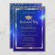 Diamonds Frame Gold Grad Cap Blue Graduation Invitation