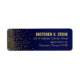Bold, modern address labels - a stylish perfect finishing touch for your mailings & wedding favours! Glittery flecks of golden square confetti spill onto the body of this navy blue label. Matching products available. Comes in 6 colours: aubergine, navy, turquoise, black, pink and sand. Click the CUSTOMIZE IT button to personalise with your own text. TO SEE THE ENTIRE COLLECTION, VISIT MY WEBSITE: glamprettyweddings.com. For questions or custom requests, email: cheryl@glamprettyweddings.com/contact. "Diamonds in the Sky" design by Cheryl Daniels © 2014.